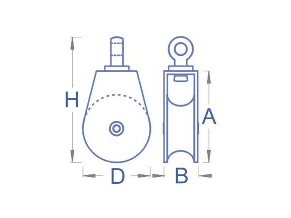 Block aus Messing mit beweglicher Rolle. Die Rolle hat einen Durchmesser von 10 mm. Am oberen Ende der Messingblöcke befindet sich eine Schlaufe zur Befestigung. In der Packung sind 2 fertig montierte Rollenblöcke enthalten.